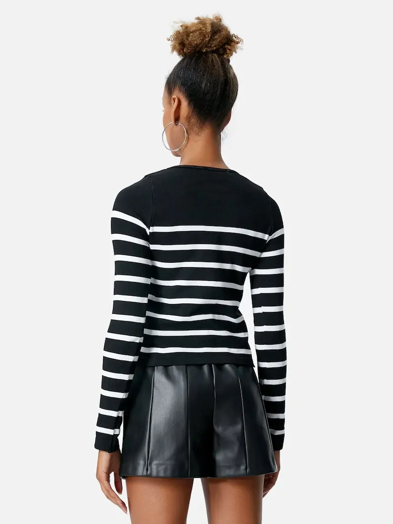 The timeless striped pattern adds a modern touch, making it easy to pair with jeans, skirts, or trousers. Perfect for casual outings, relaxed weekends, or daily wear.