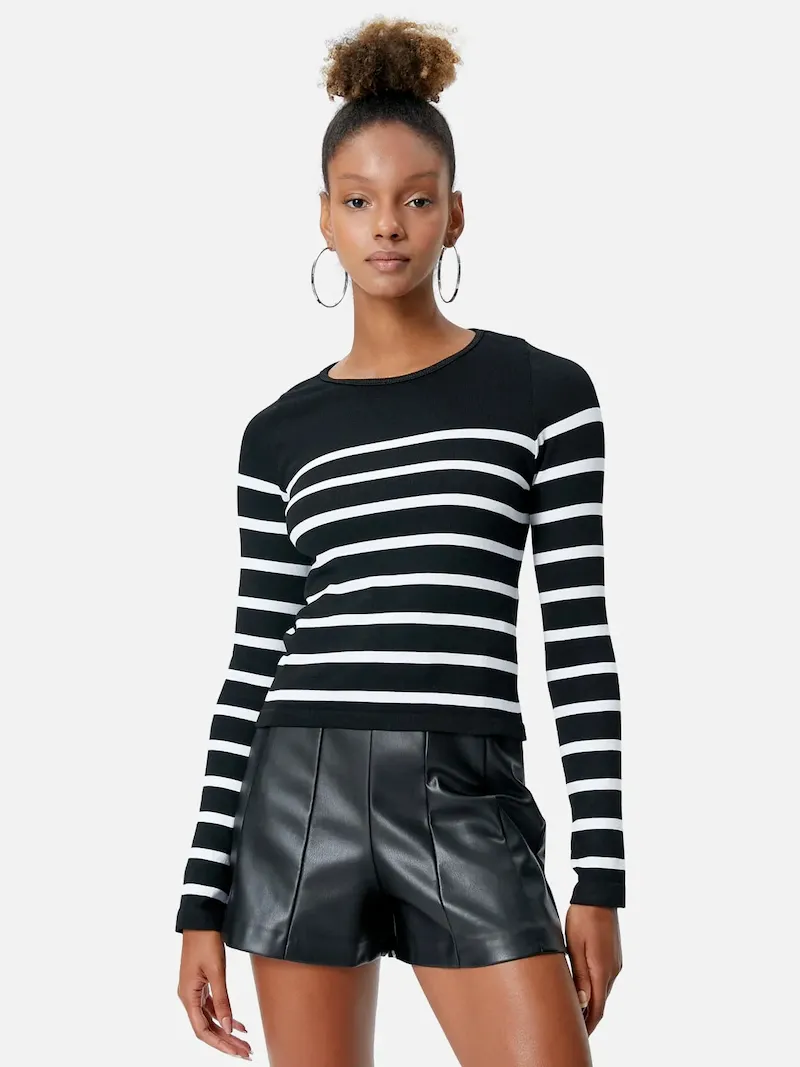 The timeless striped pattern adds a modern touch, making it easy to pair with jeans, skirts, or trousers. Perfect for casual outings, relaxed weekends, or daily wear.