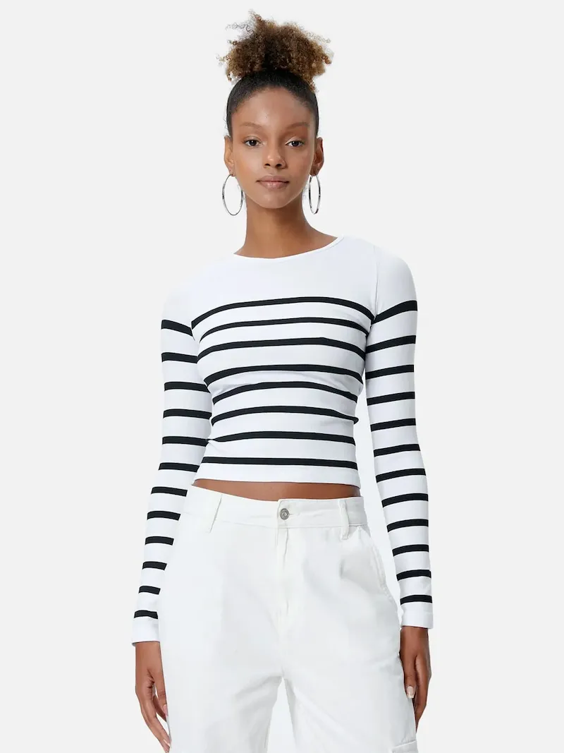 Stay effortlessly stylish with the Gray Stripe Tee, a classic wardrobe essential designed for comfort and simplicity. Made with soft breathable fabric, this tee keeps you comfortable throughout the day.The timeless striped pattern adds a modern touch, making it easy to pair with jeans, skirts, or trousers. Perfect for casual outings, relaxed weekends, or daily wear.