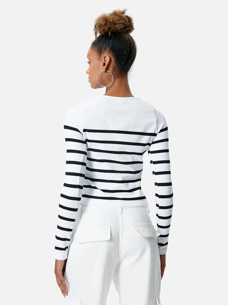 A comfortable gray striped tee with long sleeves, perfect for casual everyday wear.